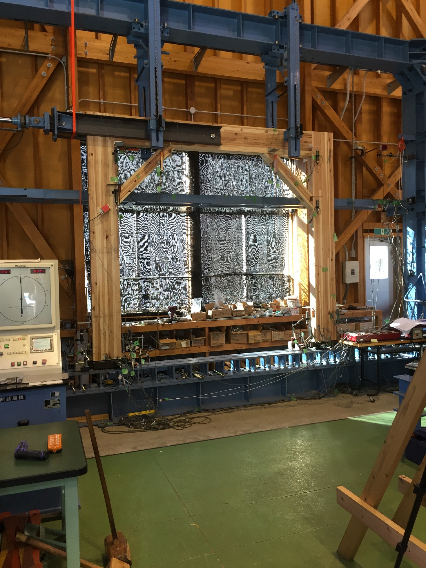 今回の実験の結果、速報値ではフレームの両サイドへ3尺の3.5倍程度の耐力壁を
