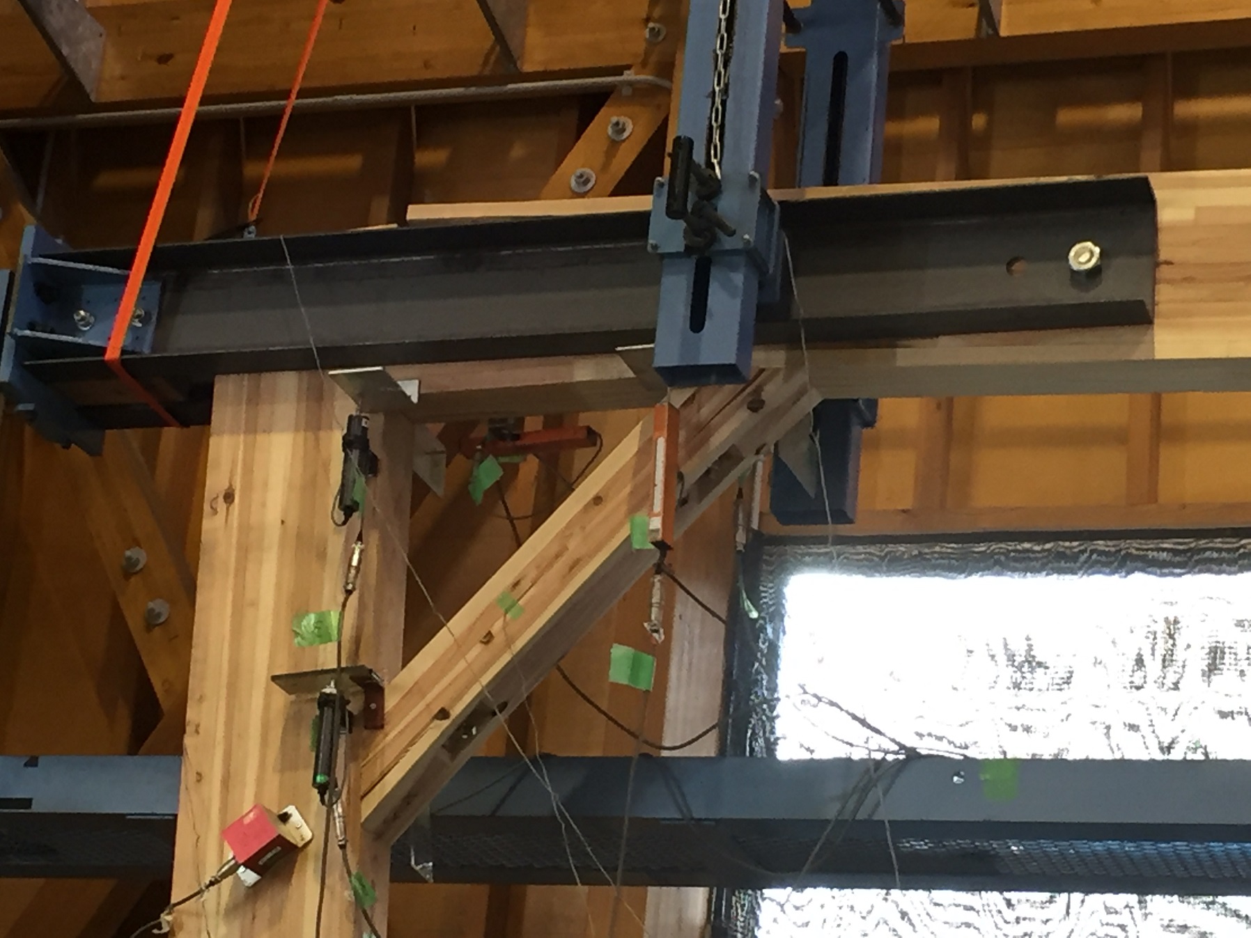 実験での最終的な破壊は方杖根元に割裂が発生した後、方杖根本仕口部が抜けた。